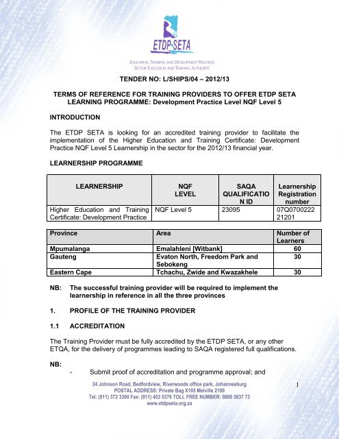 Tor Learning Programes Etdp Seta Development Prac L5 Doc